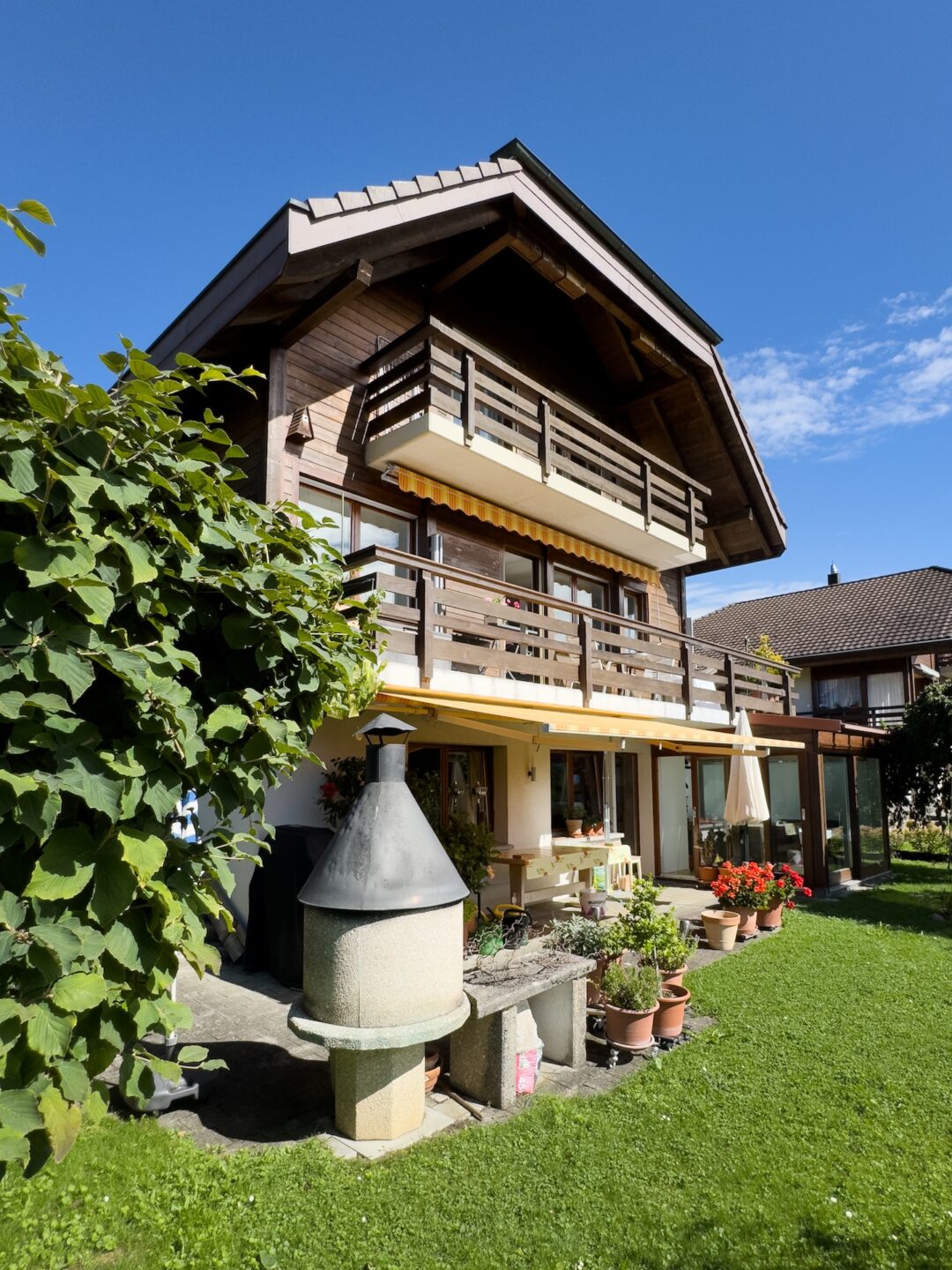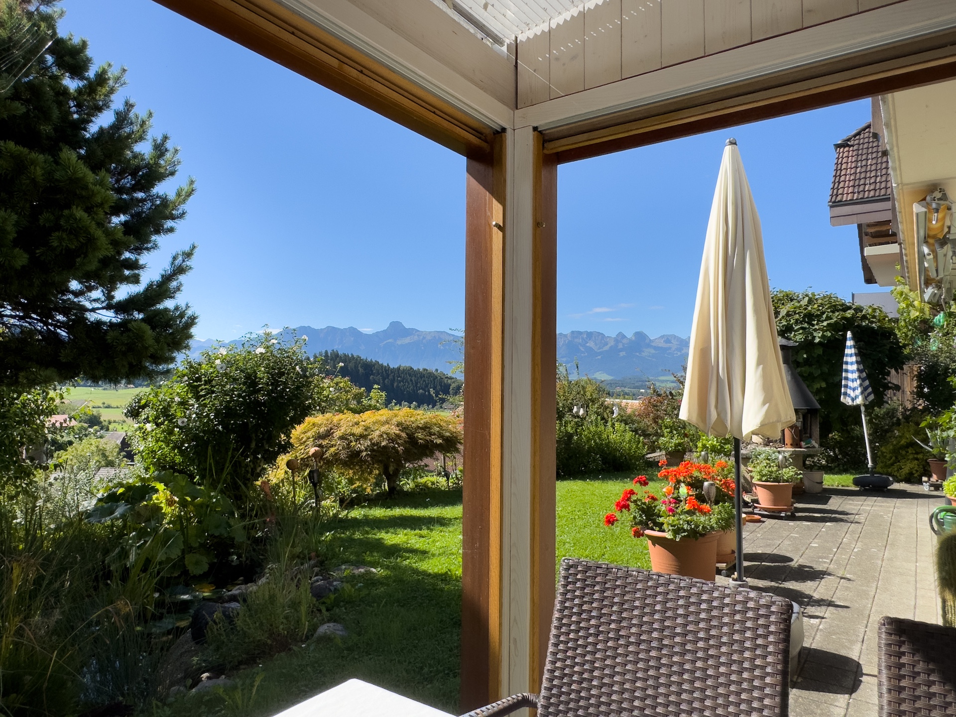 Das gepflegte Einfamilienhaus am sonnigen Hang von Herbligen überzeugt mit lichtdurchfluteten Räumen, einem grosszügigen Umschwung und einem Wintergarten, der den Wohnraum erweitert und zu jeder Jahreszeit ein besonderes Ambiente schafft. Der liebevoll angelegte Garten mit eigenem Teich lädt zum Verweilen ein und bietet eine Idylle der Ruhe. Besonders eindrucksvoll ist die unverbaubare Sicht auf den Niesen und das Stockhorn, die das Panorama wie ein Naturgemälde wirken lassen.