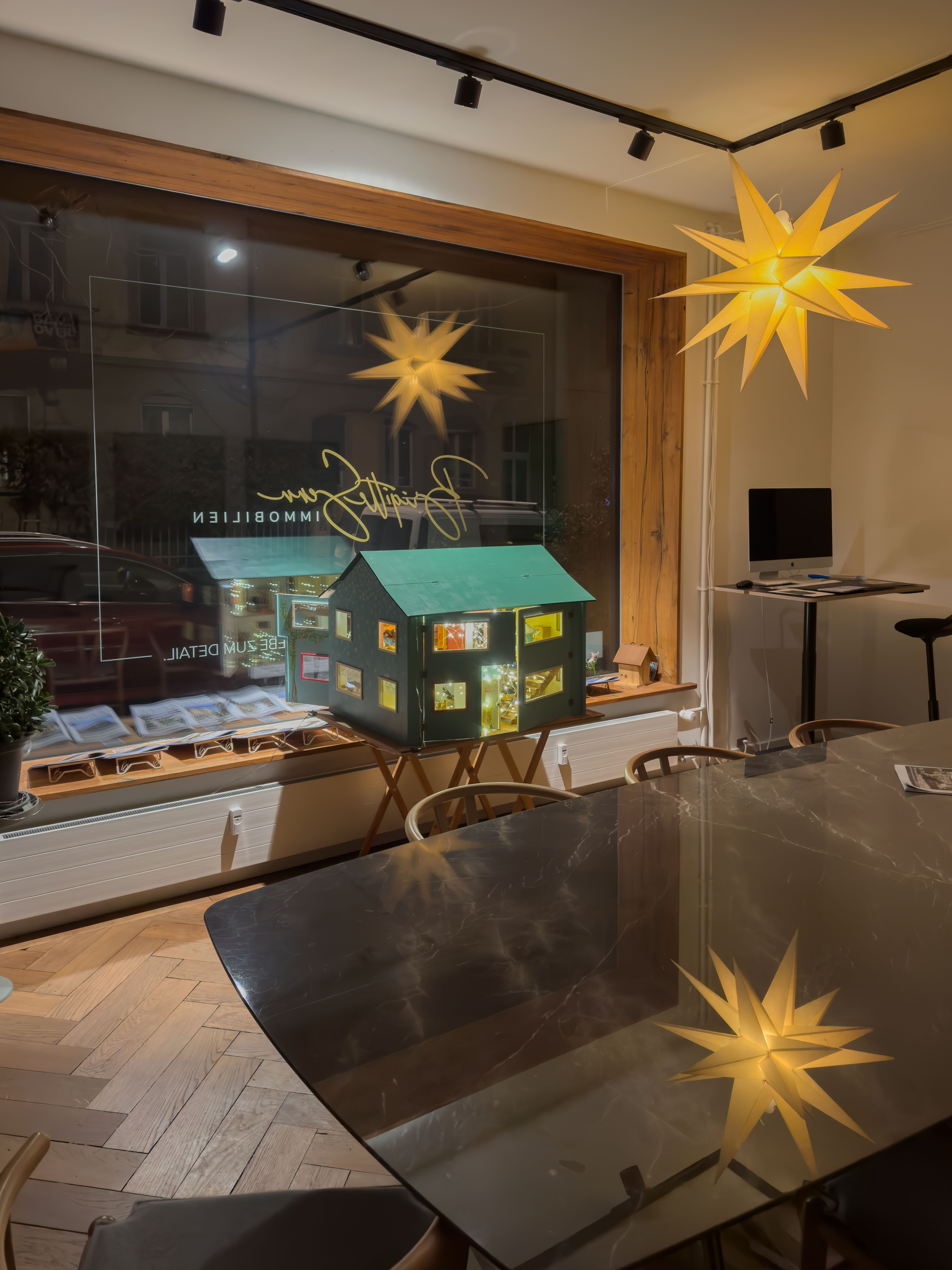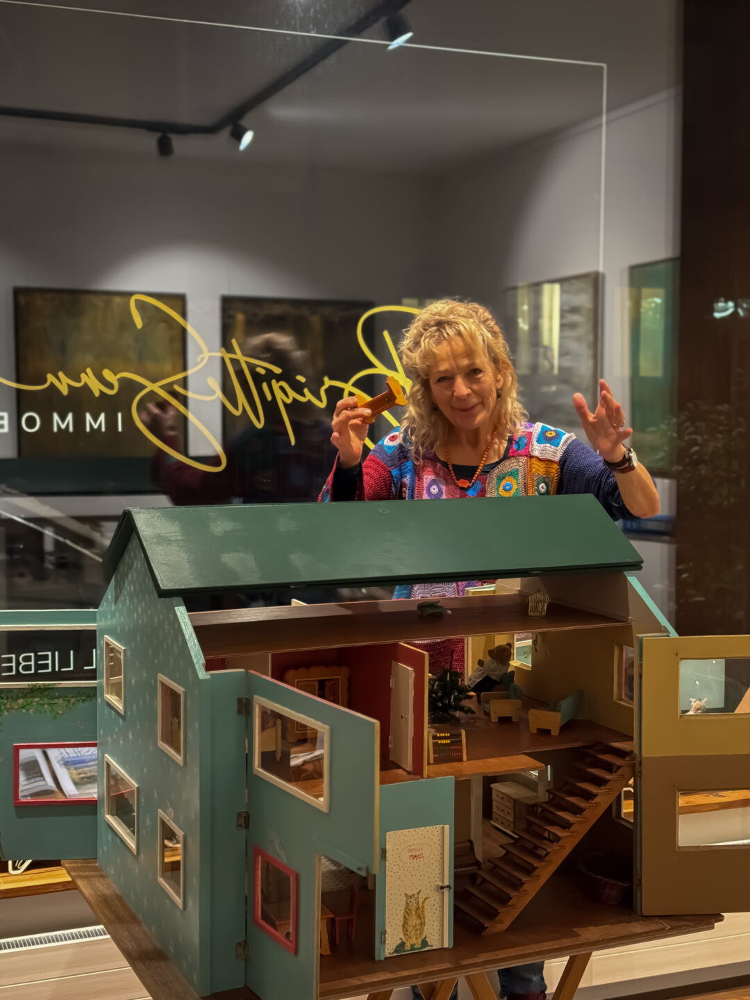 Und sie ist nicht nur eine begnadete Zeichnerin: Genau diese Kundin hat auch das Puppenhaus in unserem Schaufenster restauriert – ihr eigenes Puppenhaus, das sie 1960 von ihrem Vater erhalten hat. Wie schön, dass ich dieses besondere Stück Erinnerungs- und Handwerkskunst nun eine Weile bei uns präsentieren darf.