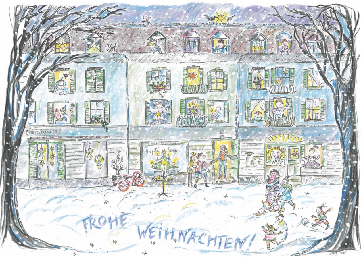 Dieses Jahr kommen unsere Weihnachtsgrüsse in einem besonderen Gewand: Ich habe eine handgezeichnete Karte bei einer lieben Kundin in Auftrag gegeben – und freue mich, ihre wunderschöne Illustration hier zu teilen. Sie hat dabei auf jedes Detail geachtet – sogar mein rotes Gravelbike hat seinen Platz auf der Karte gefunden. 😊