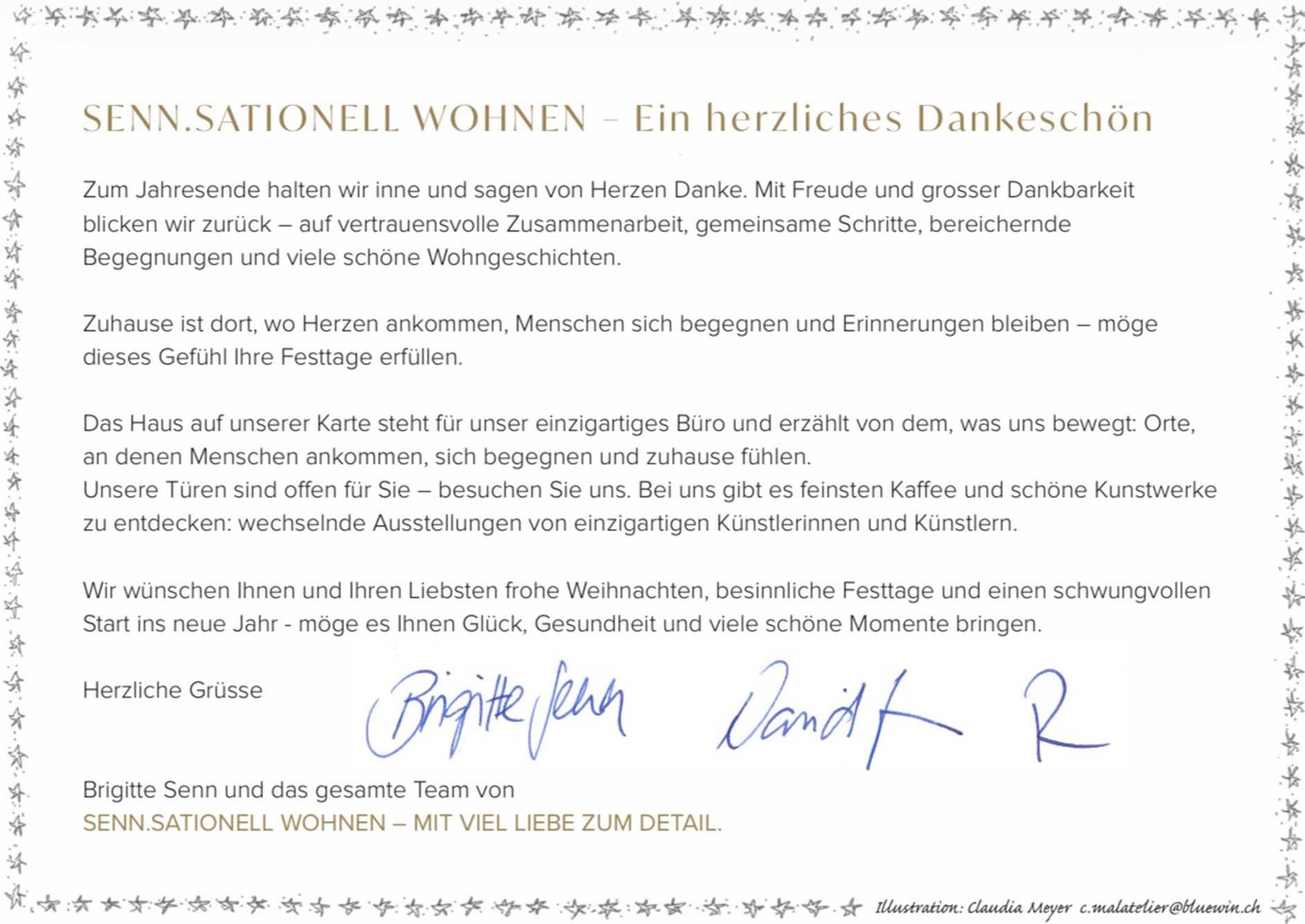 Von Herzen danke ich allen Kundinnen und Kunden, Partnern und Wegbegleitern für das Vertrauen und die angenehme Zusammenarbeit. Ich wünsche Ihnen und Ihren Liebsten besinnliche Festtage, erholsame Momente und einen gelungenen Start ins neue Jahr. ✨