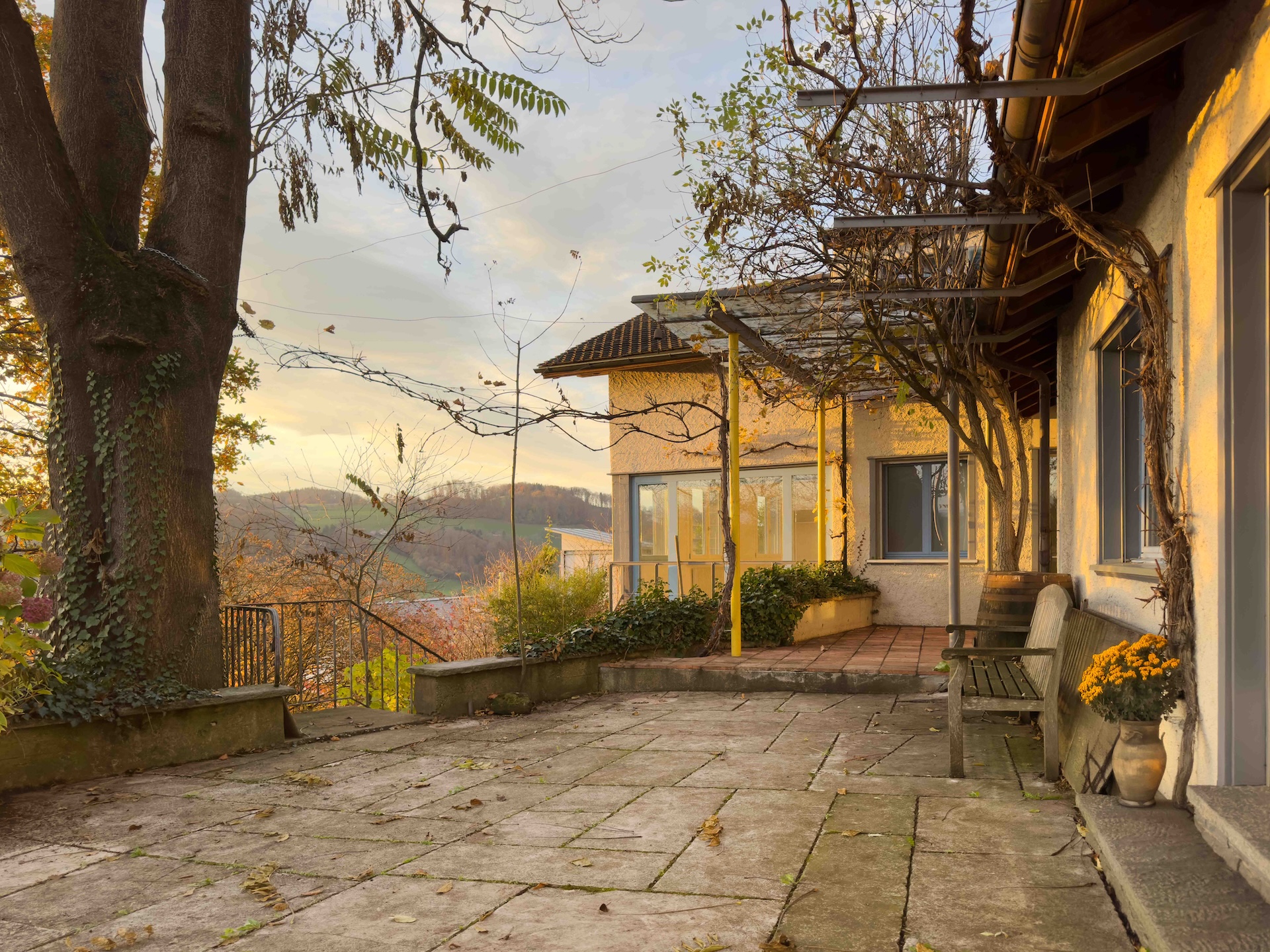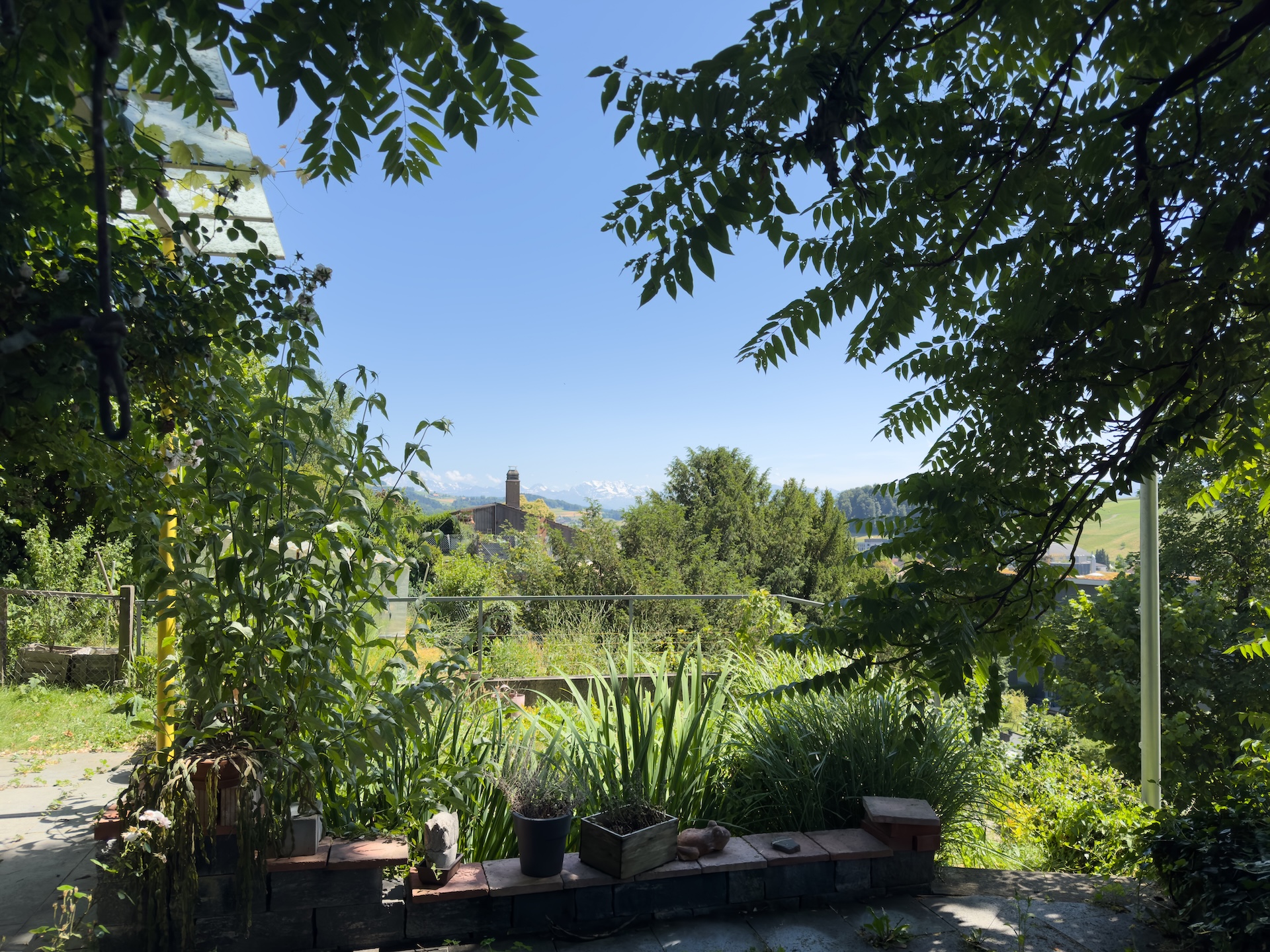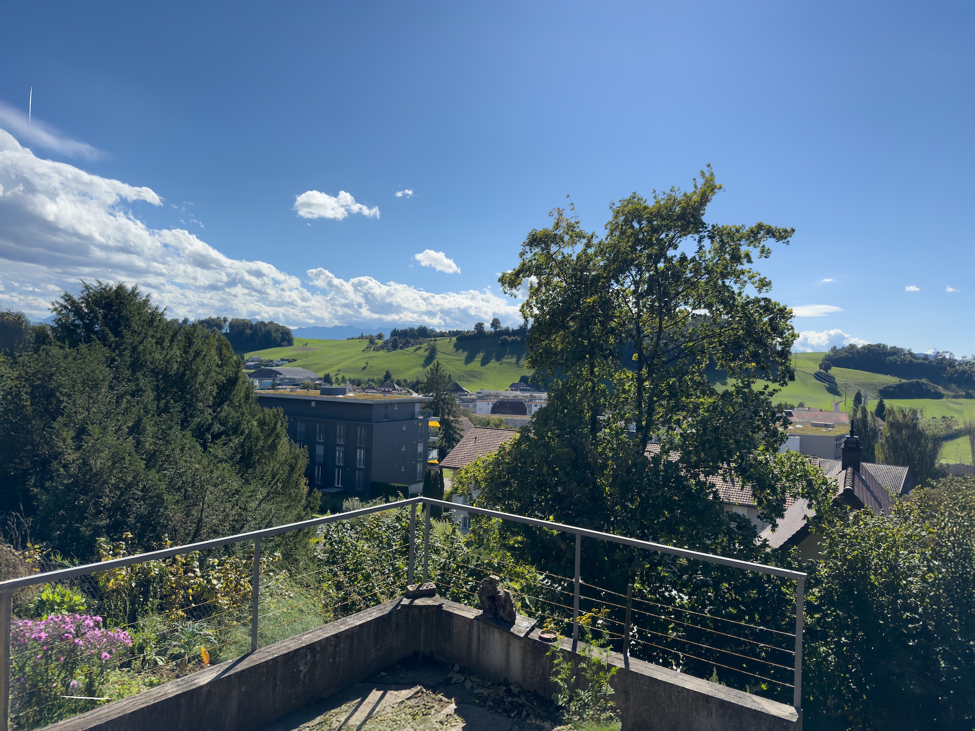 Dieses L-förmige Einfamilienhaus (Baujahr 1949) am Sonnhaldenweg 4 überzeugt mit seiner sonnigen Hanglage, grosszügigen Grundrissen und einem einladenden Anbau in Sichtbeton (BJ. 2008). Im Jahr 2010 wurde der Estrich zu einer modernen 3-Zimmer-Einliegerwohnung ausgebaut. Mit dem Lift gelangen Sie bequem auf das Grundstück. Eine clevere Anpassung, es müssen somit keine langen Treppensteige überwunden werden. Die gepflegte Liegenschaft wurde ständig unterhalten, laufend erneuert und erweitert. Lichtdurchflutete Räume schaffen eine offene Wohnatmosphäre; der Garten mit Quitten, Feigen und weiteren Obstgehölzen wird zur grünen Oase. Von Terrasse und Garten reicht der Blick bis ins Berner Oberland – mit Sicht auf die Berge, darunter Eiger, Mönch, Jungfrau, Niesen u.a.; ein Panorama, das täglich begeistert.